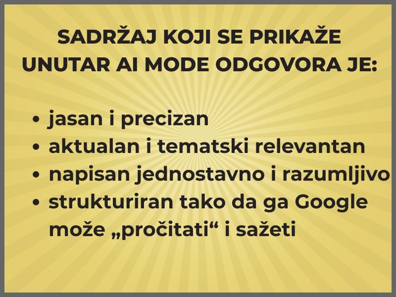 To je sadržaj koji AI mode prepoznaje kao relevantan i ovakva će web stranica prije biti uključena u AI odgovor.