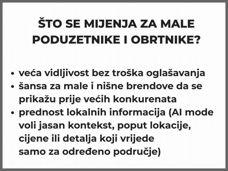 Google AI mode nije neprijatelj malim brendovima, ali jest podsjetnik na to kako se se digitalni prostor jako brzo mijenja.