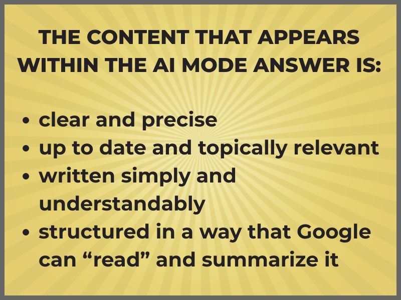 The content that appears within the AI mode answer might not even be among the top results on Google, but it is:
