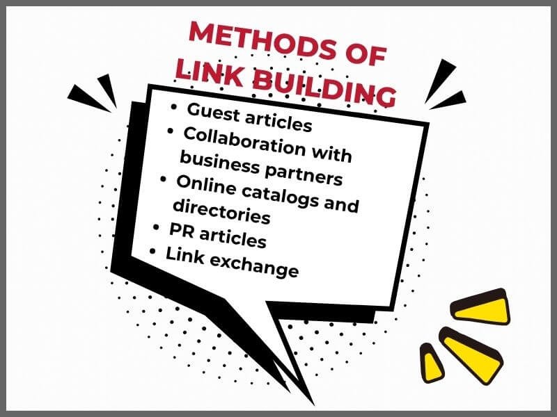 If your business has meaningful overlap with another activity (for example, you make kitchens and someone else sells household appliances), you can arrange mutual placement of links on your websites. It is important to have thematically related pages and a recommendation that looks natural; as useful information for visitors, and not as a randomly inserted link without meaning.