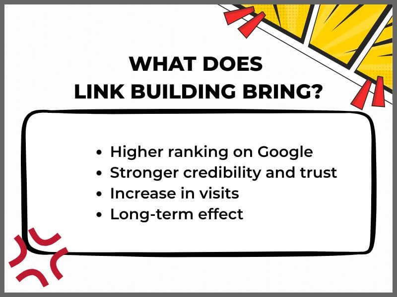 If done correctly, link building brings visible and measurable benefits, and that on several levels: