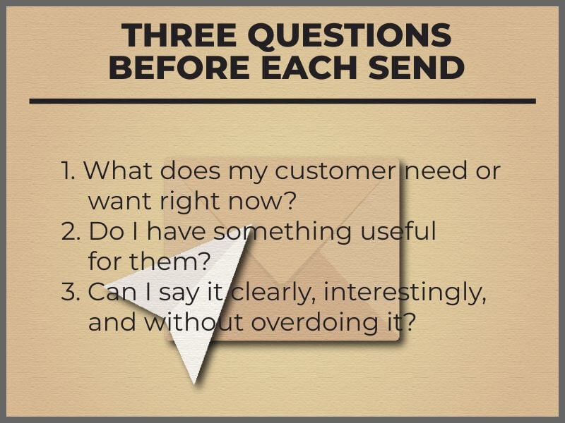 You don't have to know all the marketing tricks, just ask yourself these three questions before each send: